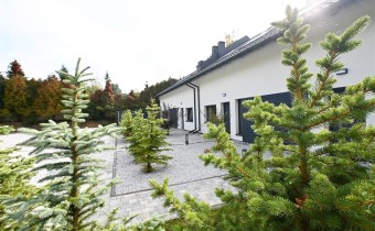 Na parterze znajduje się olbrzymi salon z przeszkleniami i wyjściem na taras, łazienka, kuchnia z dużym oknem, wiatrołap, pomieszczenie gospodarcze/garderoba, natomiast pierwsze piętro składa się z trzech sypialni, łazienki oraz części komunikacyjnej.