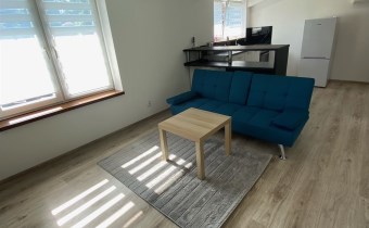 Kuchnia w pełni wyposażona w zabudowę meblową oraz sprzęty AGD takie jak: piekarnik, płyta indukcyjna oraz lodówka. Z salonu prowadzi wyjście na duży taras. Salon wyposażony w kanapę, stolik kawowy oraz szafkę RTV, jedna z sypialni wyposażona jest w łóżko małżeńskie oraz szafę, natomiast druga sypialnia pozostaje pusta. Łazienka w całości wykafelkowana w nowoczesnym stylu, wyposażona w kabinę prysznicową.