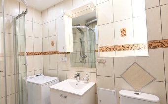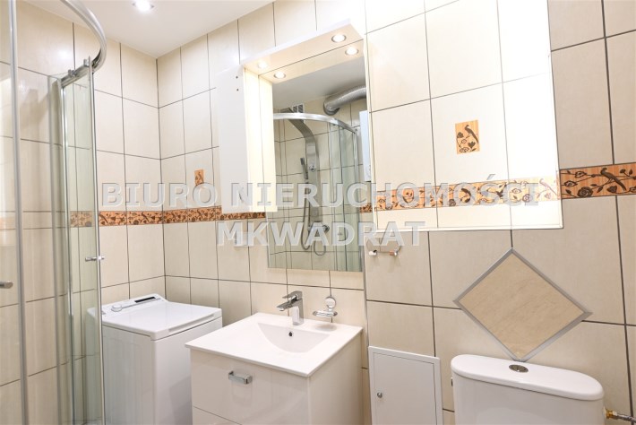 - wykafelkowanej łazienki w której na wyposażeniu pozostaje pralka,