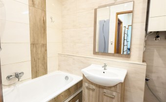 Pomieszczenia pozostają wyposażone w meble. Na podłogach znajdują się wysokiej jakości panele. Łazienka jest wykafelkowana i wyposażona w wannę.