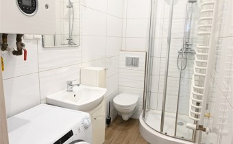 W całym mieszkaniu wykonane zostały sufity podwieszane a na ścianach gładzie, łazienka jest w pełni wykafelkowana, na podłodze w przedpokoju oraz kuchni położone są kafle, w pozostałej części mieszkania na podłogach są panele. Mieszkanie jest jasne i przestronne, dające dużą możliwość dowolnej aranżacji wnętrza. Nieruchomość jest sprzedawana wraz z umeblowaniem.