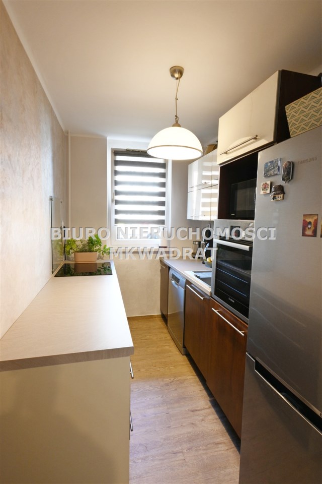 Na podłogach znajdują się panele oraz kafelki. W kuchni jest ładna zabudowa wraz ze sprzętami AGD. Mieszkanie jest ciepłe oraz przytulne. Ogrzewanie pochodzi z sieci miejskiej łącznie z ciepłą wodą.