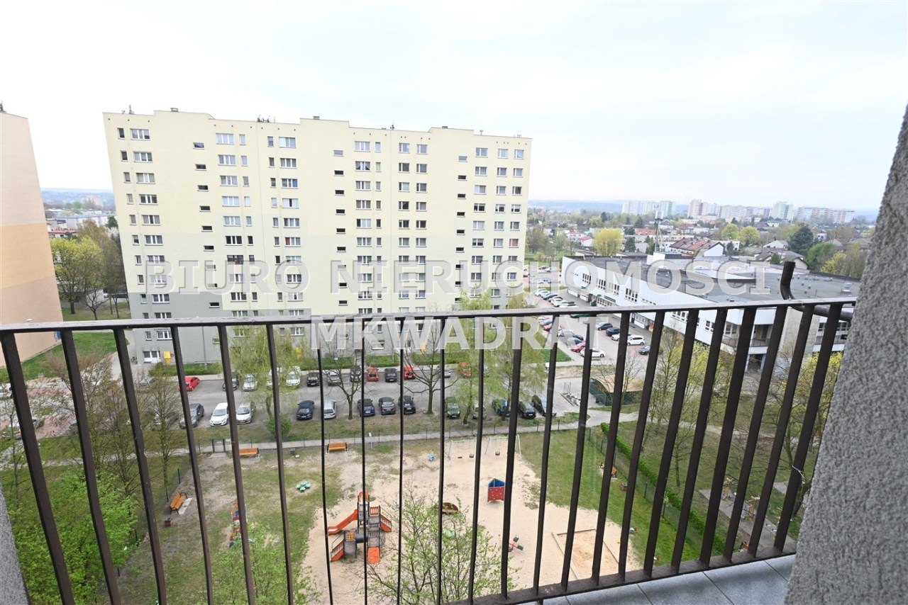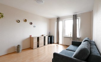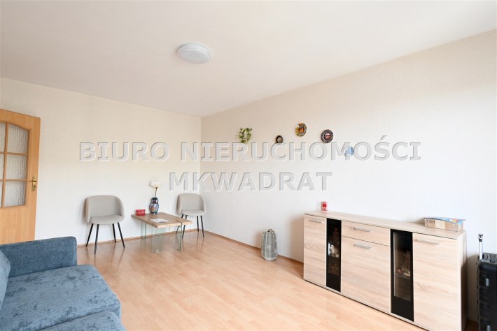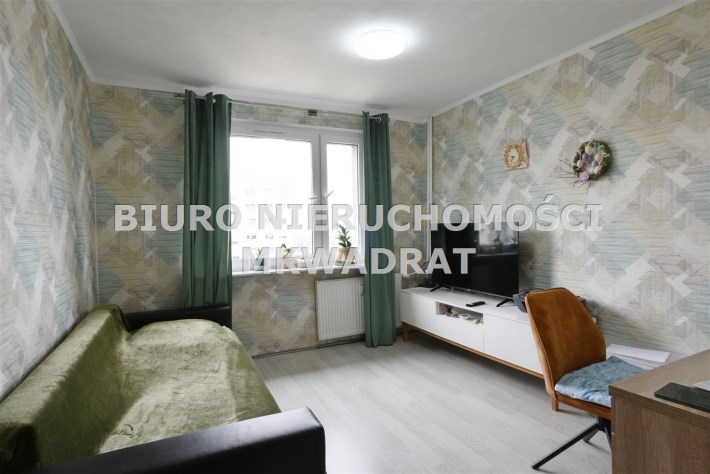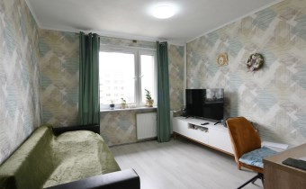 Z salonu jest wyjście na balkon z widokiem na osiedle. Na podłogach znajdują się panele, na ścianach tapety. Okna nowe PCV, wymienione w ostatnich latach.