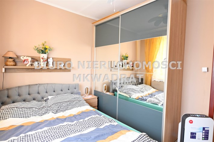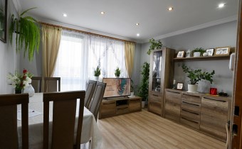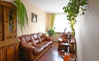 Mieszkanie składa się z dwóch osobnych sypialni, salonu, kuchni z oknem, łazienki, wc oraz przedpokoju. Dodatkowo do lokalu przynależy piwnica. Z salonu jest wyjście na duży balkon z widokiem na osiedle domów jednorodzinnych.