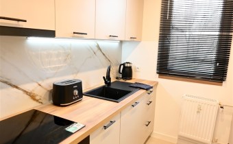 Wyposażenie, które jest widoczne na zdjęciach także jest nowe i pozostaje w cenie nieruchomości.