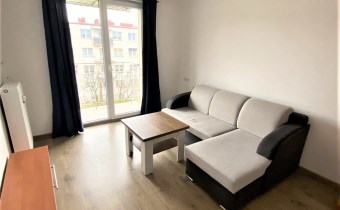 Na ścianach w pokoju znajduje się gładź gipsowa, na podłodze panele. Pokój umeblowany w rozkładaną kanapę, stolik kawowy, szafkę pod telewizor i komodę. Kuchnia wyposażona w meble oraz sprzęty tj. kuchenka gazowa i lodówka. Łazienka w całości wykafelkowana. Z pokoju prowadzi wyjście na mały balkon.