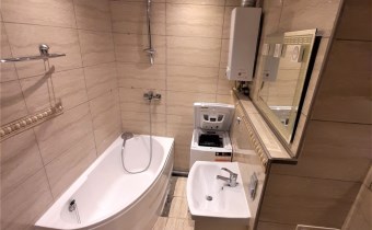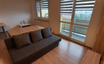 W salonie znajduje się kanapa z funkcją spania oraz stolik kawowy. Z pomieszczenia prowadzi wyjście na duży balkon o długości całego mieszkania. Kuchnia jest w pełni umeblowana z wszystkimi niezbędnymi sprzętami AGD. Łazienka w całości wykafelkowana wyposażona dodatkowo jest w pralkę. W przedpokoju znajduje się duża szafa w zabudowie z drzwiami przesuwnymi oraz garderoba. Pomieszczenia bardzo ciepłe przytulne oraz ustawne. Na podłogach panele oraz kafelki, natomiast na ścianach gładź gipsowa. W mieszkaniu są nowe kaloryfery oraz okna. Lokal świeżo odmalowany.
