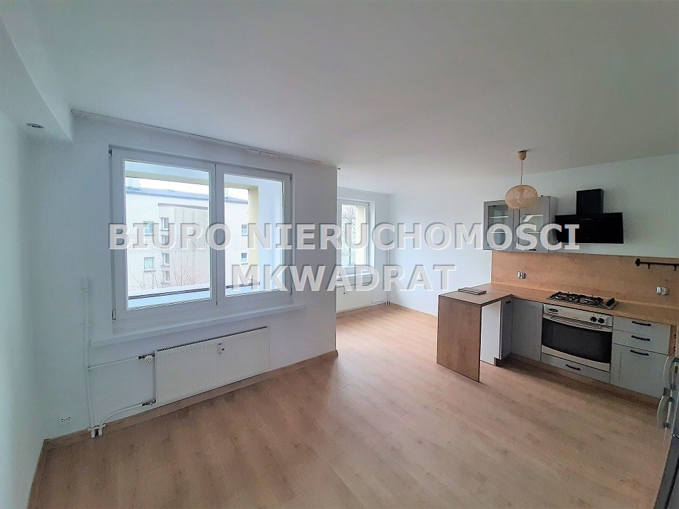 Pomieszczenia są jasne i przestronne. Salon z aneksem kuchennym który został wyposażony w płytę gazową, piekarnik, lodówkę, zmywarkę oraz mikrofalówkę. W sypialni pozostaje duża szafa. Łazienka wyposażona w kabinę prysznicową oraz pralkę. Do mieszkania przynależy piwnica. Budynek zadbany, dużo zieleni przy bloku oraz miejsca parkingowe dla mieszkańców. W okolicy sklepy, szkoły, przystanki komunikacji miejskiej, bardzo blisko do ścisłego centrum. Serdecznie polecamy i zapraszamy na prezentację. Biuro Nieruchomości MKWADRAT