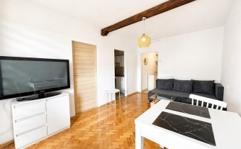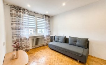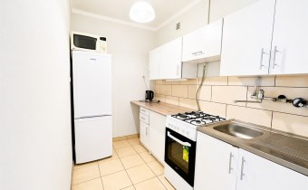 Przedmiotem oferty jest mieszkanie typu M3 znajdujące się w ścisłym centrum Rybnika. Mieszkanie usytuowane jest na czwartym piętrze w niskim, czteropiętrowym bloku. Nieruchomość posiada dwa ustawne i widne pokoje, kuchnię, łazienkę oraz przedpokój o łącznej powierzchni ok. 40 m2. Z jednego z pokoi prowadzi wyjście na balkon. Pomieszczenia w pełni umeblowane, a kuchnia wyposażona w takie sprzęty AGD jak pralka, lodówka, kuchenka gazowo-elektryczna, piekarnik. Do lokalu przynależy piwnica. Blok przeszedł termomodernizację, klatka schodowa jest czysta i zadbana.