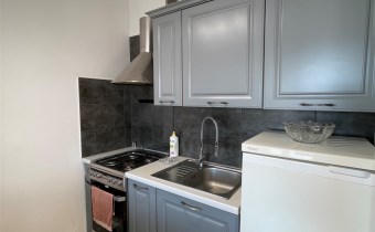 - kuchnia - szafki wiszące oraz stojące, piekarnik z płytą gazową, okap, lodówka z zamrażalnikiem, zlewozmywak z baterią