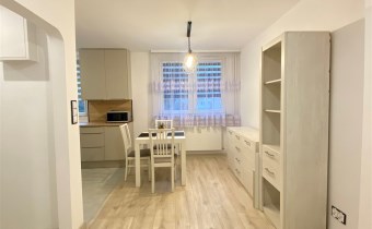 Przedmiotem oferty jest mieszkanie usytuowane na parterze w niskim bloku. Mieszkanie po remoncie, sprzęty oraz meble nowe. Lokal składa się z salonu, sypialni, kuchni, łazienki oraz przedpokoju o łącznej powierzchni ok. 38 m
