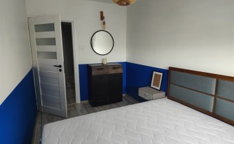 - sypialnia - wyposażona w duże łóżko małżeńskie, komodę oraz szafkę nocną